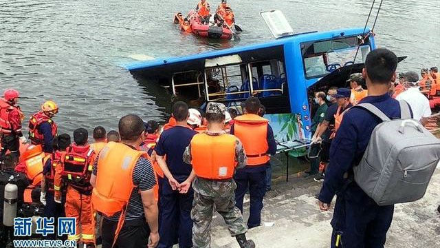 Xe buýt lao xuống hồ ở Trung Quốc làm 21 người thiệt mạng