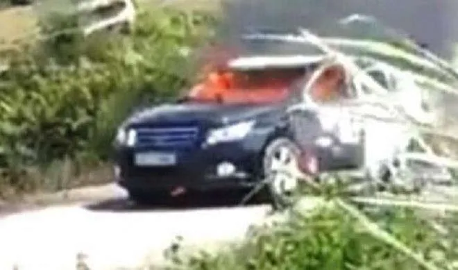 Chiếc ô tô chở đoàn Thanh tra của Sở Xây dựng Thanh Hóa đang trên đường đi làm việc thì bất ngờ bốc cháy tại xã Thăng Bình, huyện Nông Cống.