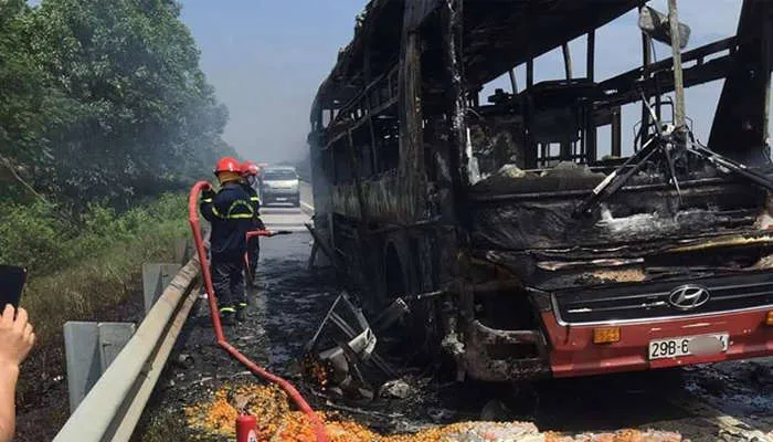 Vào khoảng 9h30 hôm nay, xe khách giường nằm do tài xế N.V.Đ (43 tuổi) cầm lái đi trên cao tốc Nội Bài - Lào Cai hướng về Hà Nội. Khi đi đến Km12+400 (đoạn qua huyện Bình Xuyên, Vĩnh Phúc), hành khách phát hiện phần đuôi xe bốc khói nên hô hoán tài xế.